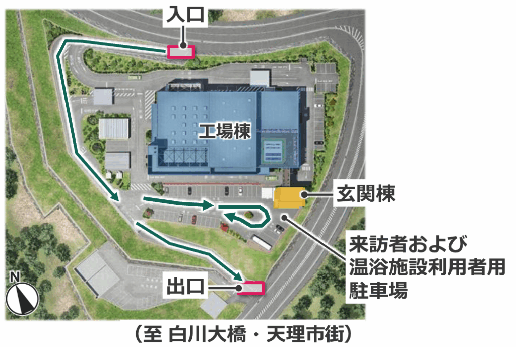 お車でお越しの際には、敷地内の駐車スペースにお止めください。