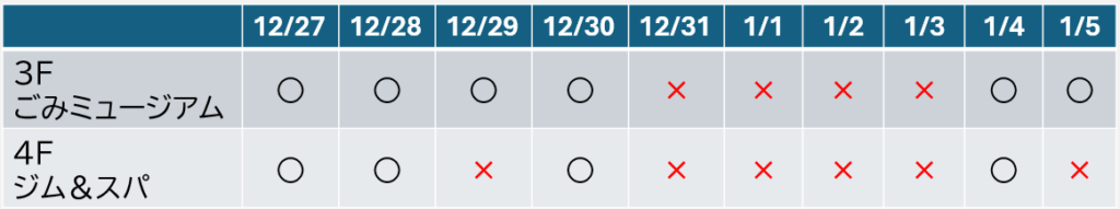 年末年始営業日のご案内